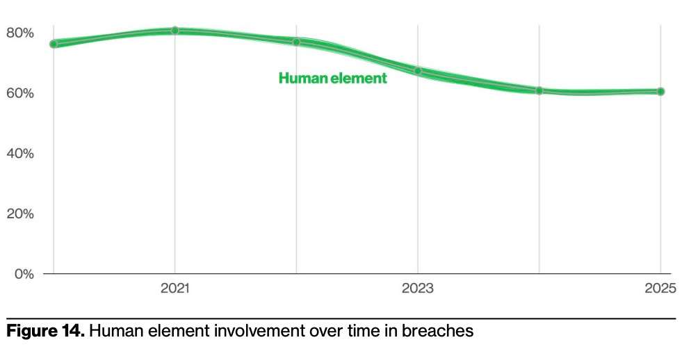 For some good news, the Verizon report indicates that awareness training is having a positive effect, as human responsibility for breaches has decreased to 60% from the 80% it was a few years ago.