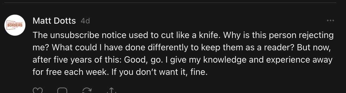 But for the first time, I just said, Good. F* you, anyway. I dedicate hours weekly to this newsletter, and if you choose not to read it for free, fine. I don’t want to share my knowledge and experience with you anyway