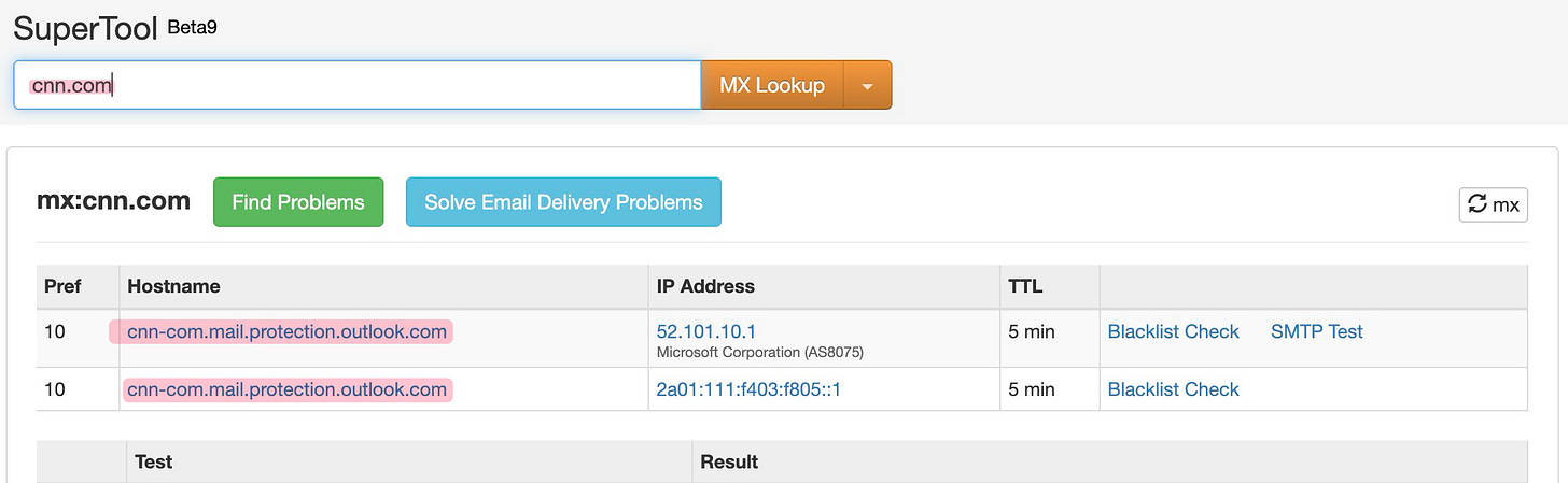 To examine it, visit MXToolbox at mxtoolbox.com, enter the organization’s domain name and perform an MX Lookup. The large majority of all business organizations use either Microsoft or Google for email. If the record includes mail.protection.outlook.com, the organization uses Microsoft 365. If it points to google.com or contains aspmx.l.google.com, they use Google Workspace. That’s your answer, and you’re done.