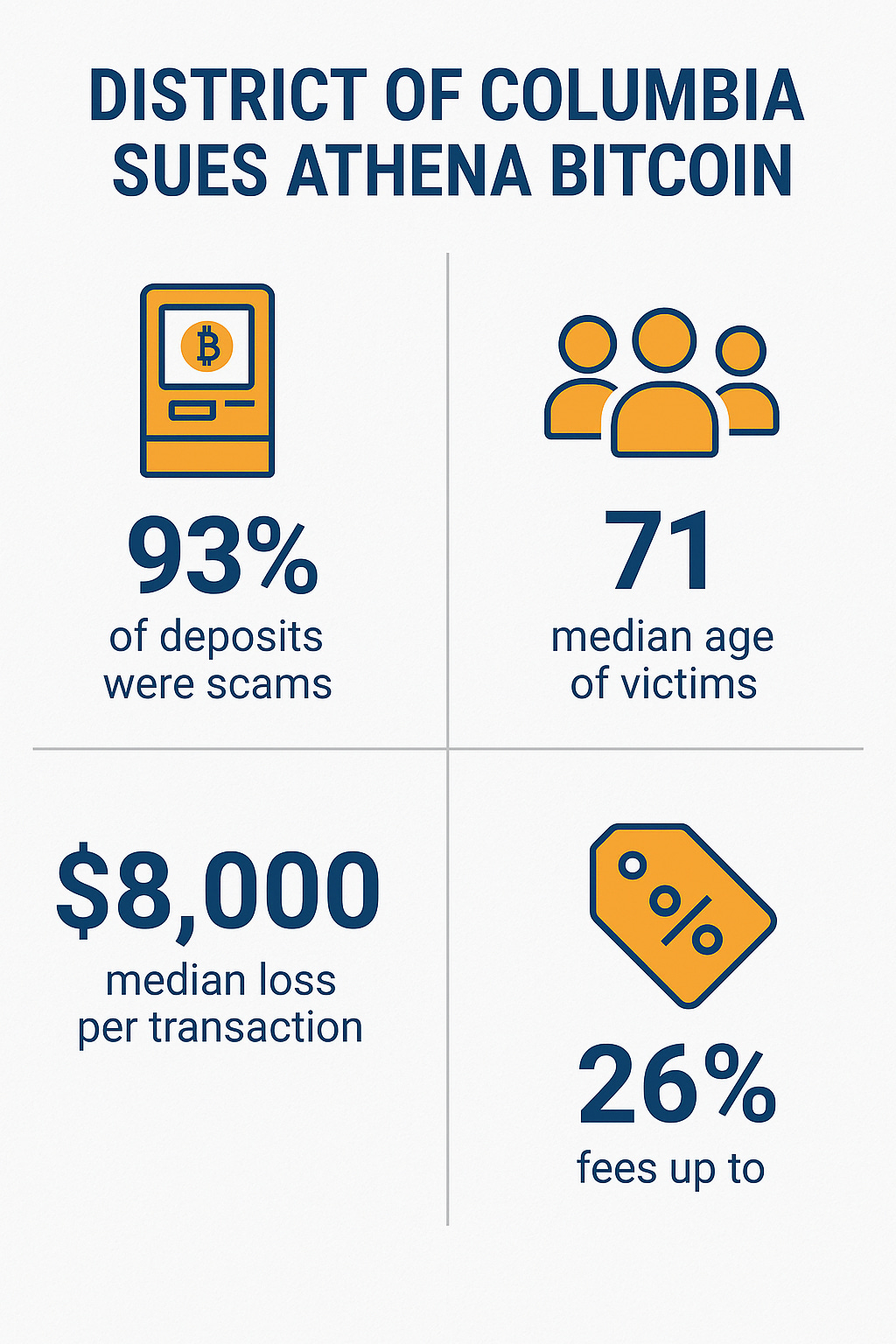 The lawsuit alleges that Athena’s ATMs in Washington, D.C., have been used for scams, particularly targeting seniors. The complaint states that within the first five months, 93% of deposits made at Athena’s D.C. ATMs were associated with fraudulent activity.